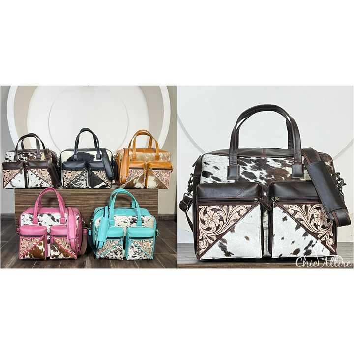 Bolso Pañalera Multifuncional de Cuero Grabado a Mano