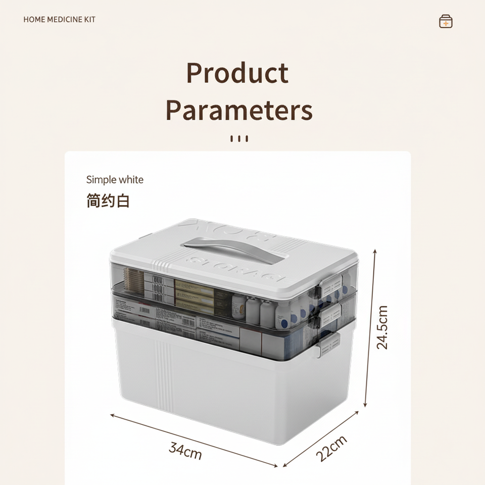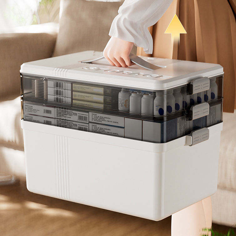 Botiquín de Primeros Auxilios Portátil Multifuncional al por Mayor con Asa, Caja de Almacenamiento Médico Cuadrada Multicapa de PP con Asa Portátil para Medicamentos
