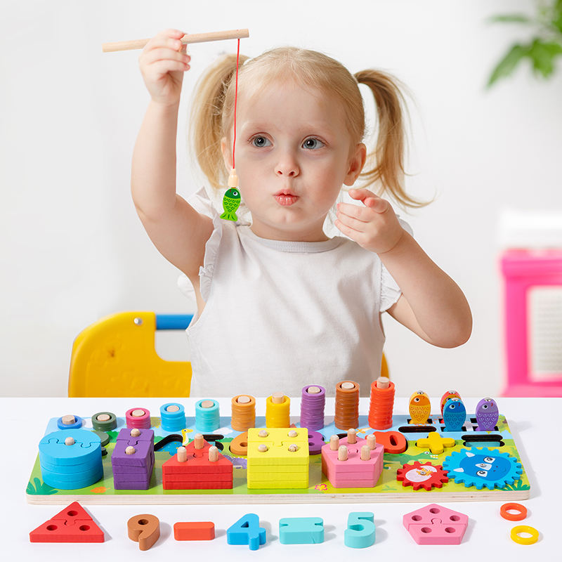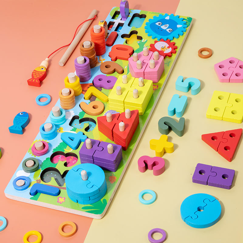 Juguete Sensorial de Pesca Multifuncional al por Mayor, Bloques de Clasificación, Juego Educativo de Matemáticas, Formas Geométricas, Juguete de Madera para Bebés