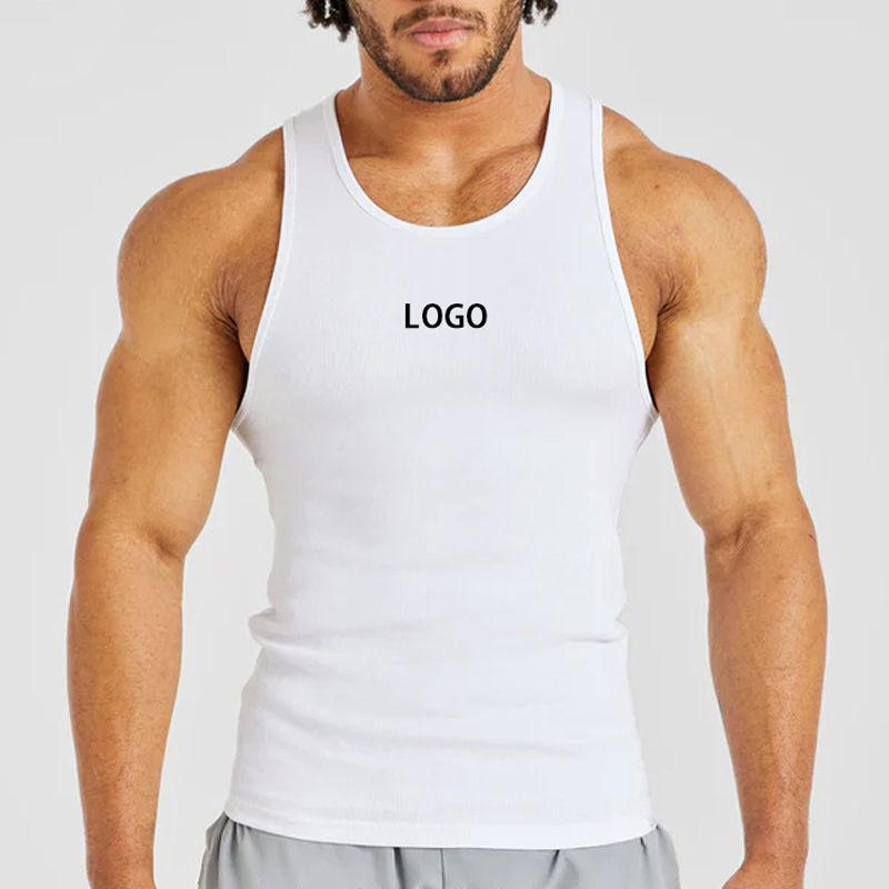Venta al por mayor Muscle Stringer Fitness Running Hombres Camiseta sin mangas Logotipo personalizado Tight Ribbed Gym Vest Mens Cotton Blank Tank Top