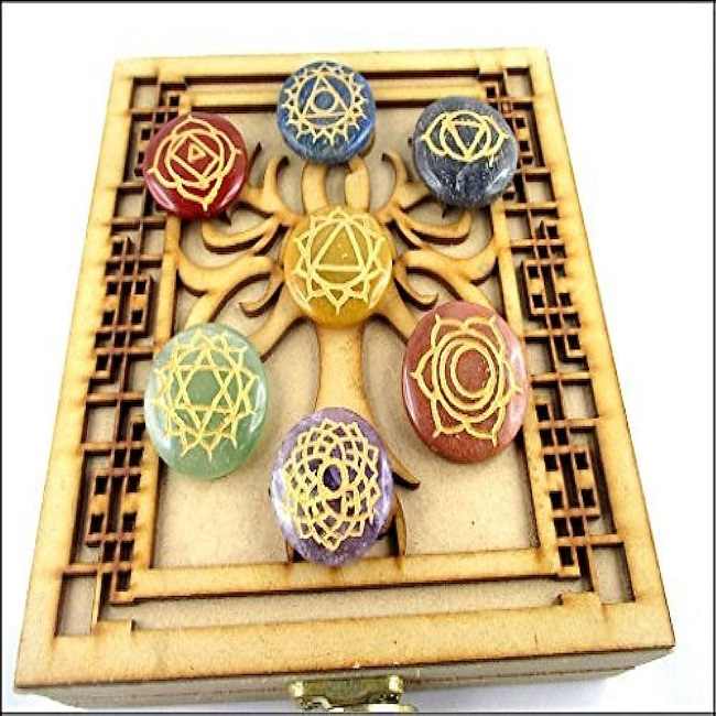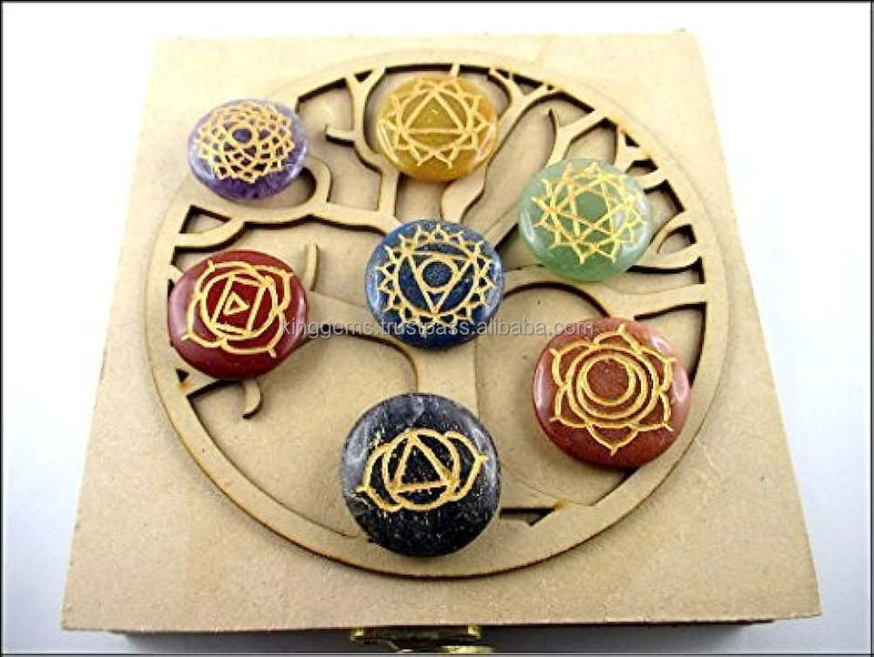 Nombre del producto:7 chakra cristal forma redonda curación Reiki conjuntos