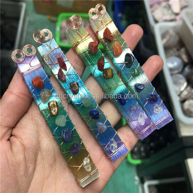 Venta al por mayor Natural 7 chakra energía curación selenita chakra espiritual semipreciosa piedra siete chakra palos piedra para fengshui