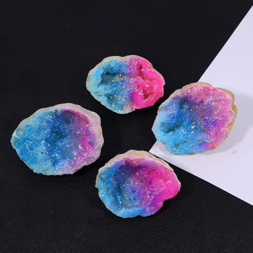 Nombre del producto:Cristal bicolor natural azul y rosa, perforado, semi-cortado, en racimo.