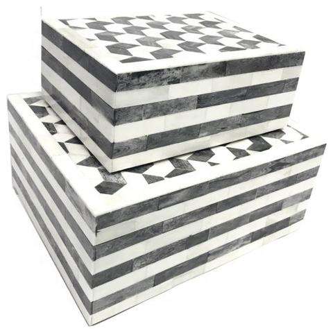 Caja de Almacenamiento de Madera Hecha a Mano con Incrustaciones de Hueso Natural, Diseño Apilable de Doble Nivel con Técnicas de Tallado, Vajilla Decorativa al por Mayor
