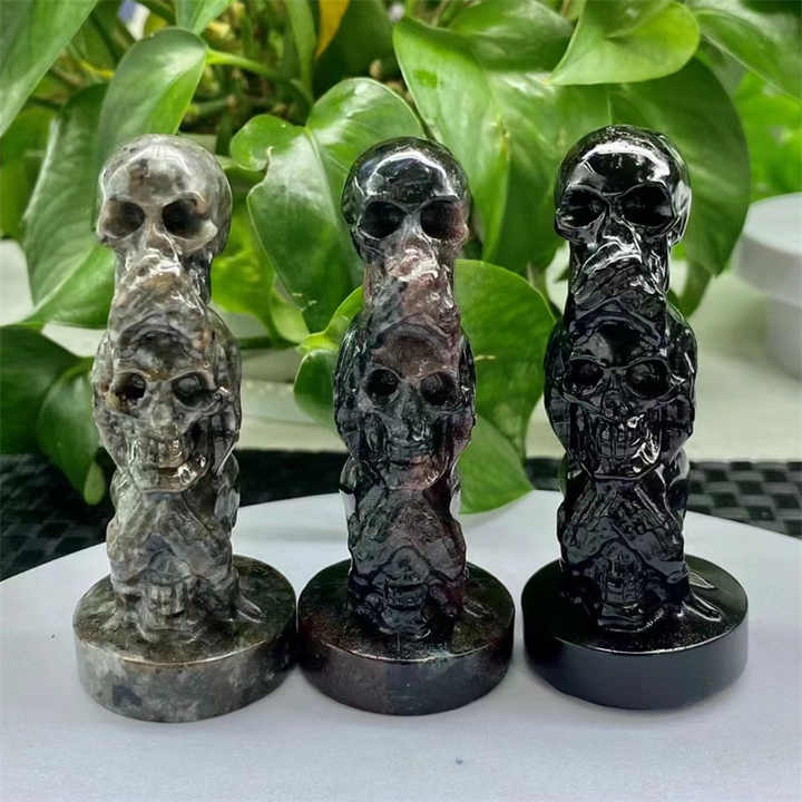 Tallas de cristal natural al por mayor, calaveras que no hablan, no escuchan, no miran, calaveras para Decoración