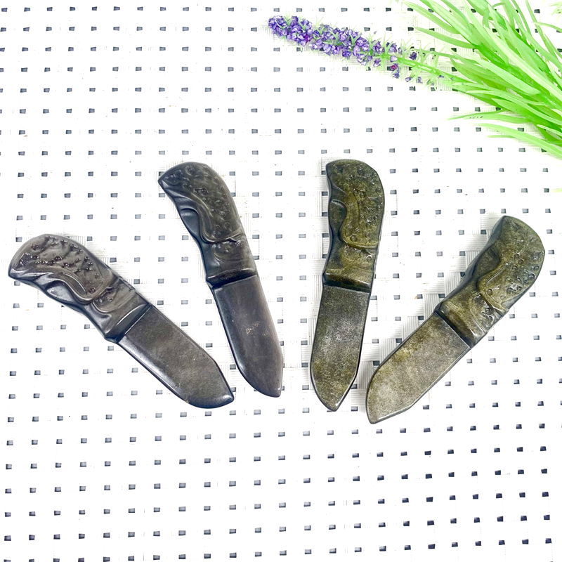 Nombre:Cuchillo de Obsidiana Dorada y Plateada