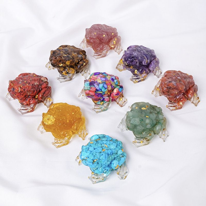 Venta al por mayor de cristal natural grava resina sapo porche adornos decoración del hogar artesanías de resina