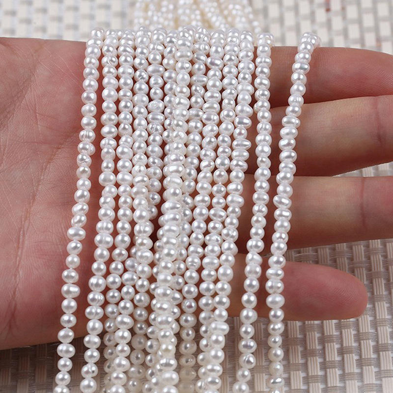 Perlas Barrocas Naturales de Agua Dulce al por Mayor, 3-4 mm, Blancas, de Luz Intensa, Pequeñas, en Forma de Huevo, con un Aspecto Similar a un Perforado