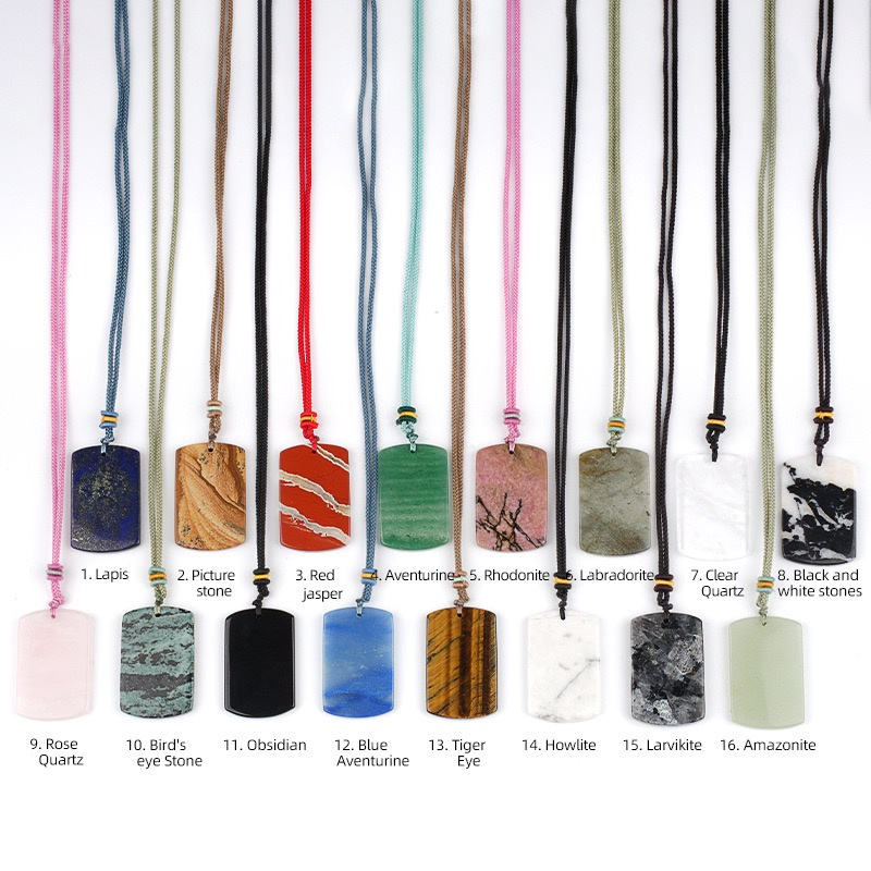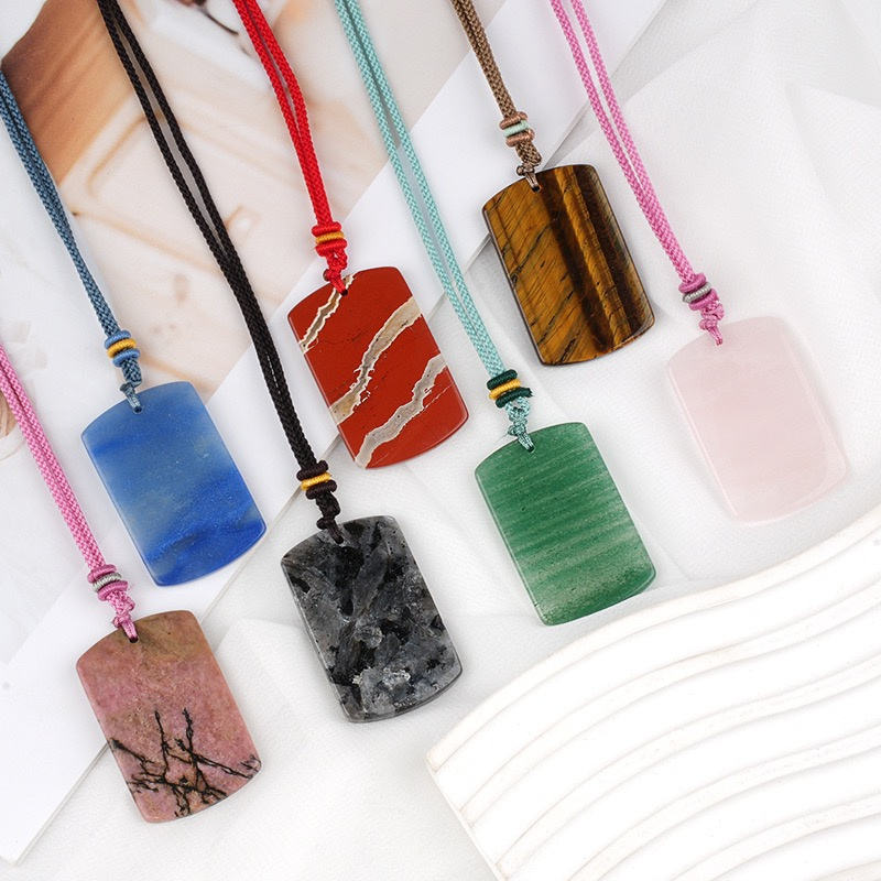 Collar con Colgante Rectangular de Piedras Preciosas Naturales al por Mayor, para Hombre y Mujer, Amuleto de Piedra Genuina, Regalos de Amuleto de la Suerte