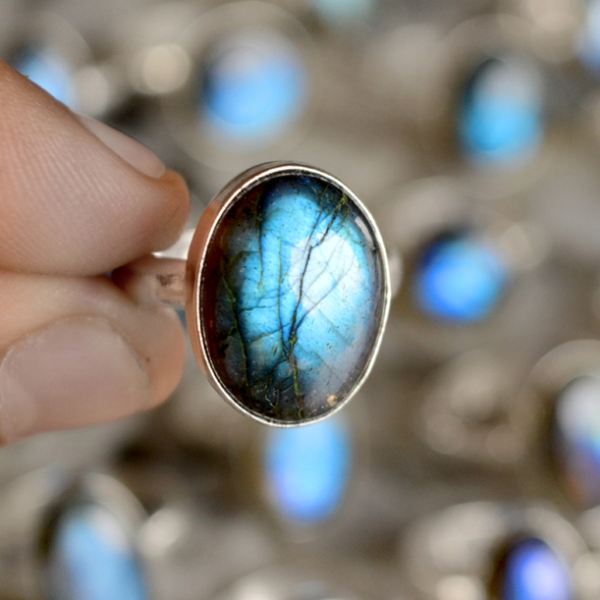 Nombre del producto:Anillo de labradorita con baño de plata.