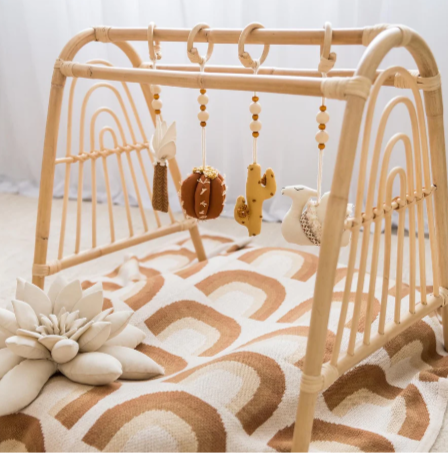 Gimnasio de actividades para bebés de ratán natural al por mayor, gimnasio para recién nacidos y niños pequeños, ejercicio colgante, gimnasio para bebés