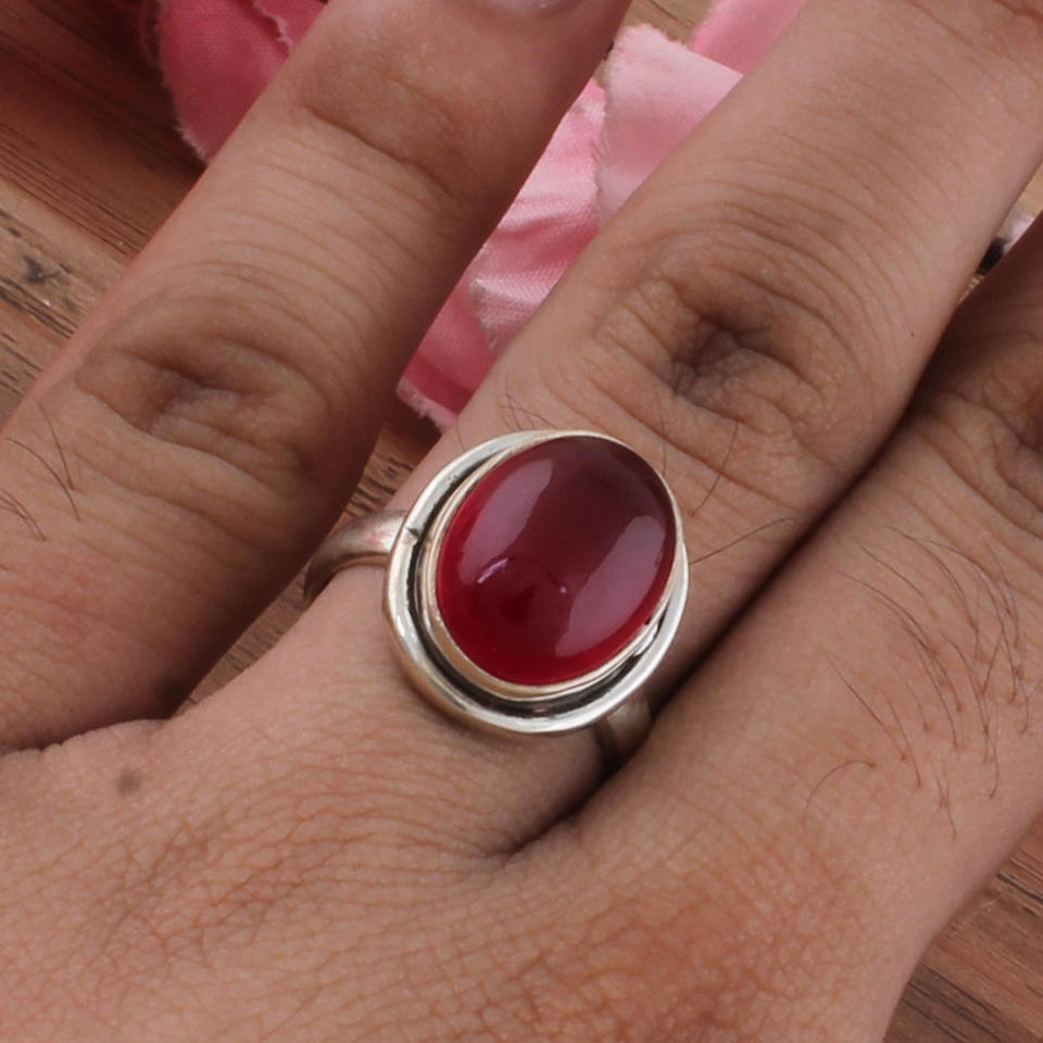 Anillo Clásico de Jade Rojo Natural con Plata de Ley 925 para Mujer y Hombre, Joyería para Bodas y Fiestas, Banda de Piedra de Conexión a Tierra, Venta al por Mayor