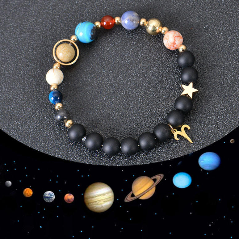Venta al por mayor de piedra natural de cristal curativo con cuentas doce constelaciones pulsera regalo de cumpleaños