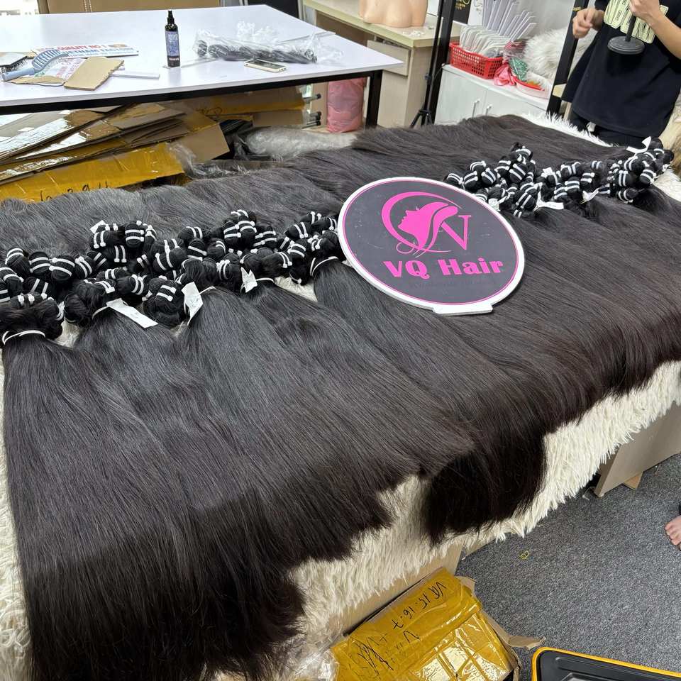 Extensiones de pelo humano virgen vietnamita de color negro natural liso natural al por mayor de la empresa VQ