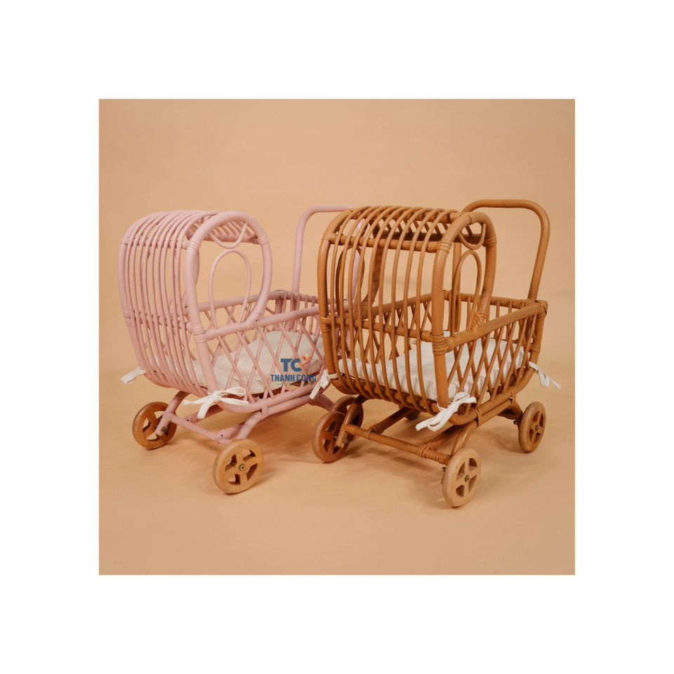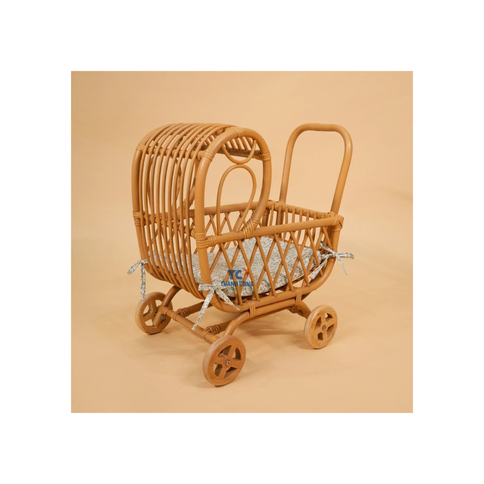 Venta al por mayor de mimbre natural muñeca cochecito de mimbre carrito cochecitos para muñecas niños juguetes imaginativos Cochecitos de bebé de Vietnam
