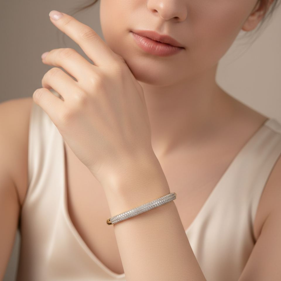 Nombre del Producto:Brazalete único de plata de ley 925 con circonita cúbica, joyería fina