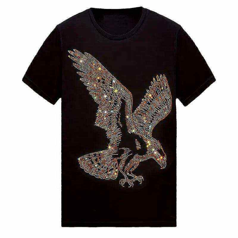 Camisetas al por mayor de nuevo diseño con estampado de diamantes de imitación para hombre, moda urbana, personalizadas, 100% algodón, casuales, de tela a cuadros.