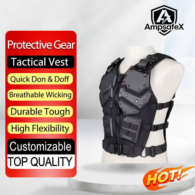 Chaleco Táctico AmpsafeX Negro Caqui, Nuevo Diseño, con Placa Protectora Rígida de EVA, Secado Rápido, Impermeable, para Actividades al Aire Libre y CS