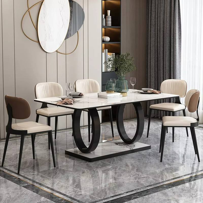 Mesa de Comedor de Madera de Diseño Nuevo al por Mayor con Patas de Trineo de Hierro