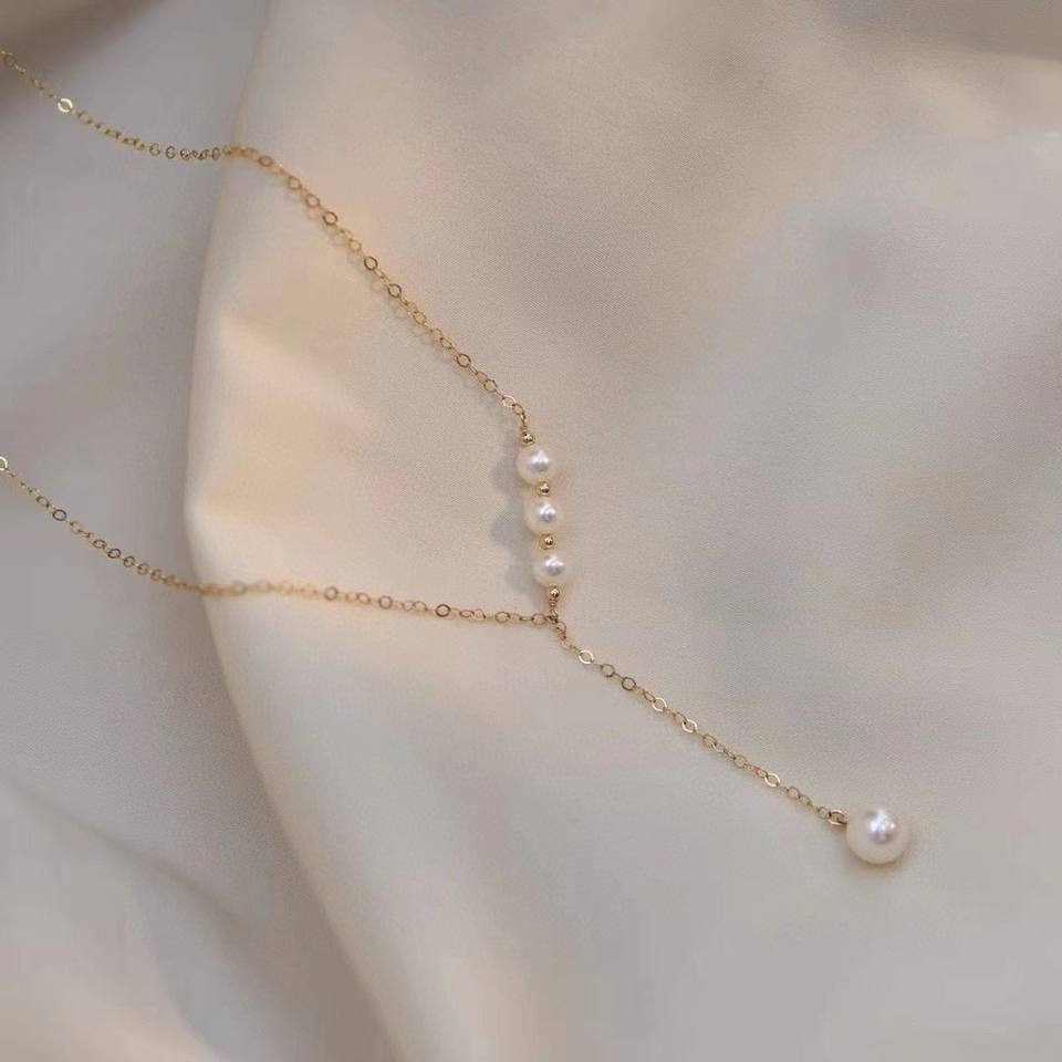 Collar de Perlas de Agua Dulce con Cadena en Forma de Y New Era, Elegancia Exquisita, Cadena de Clavícula de Alta Gama