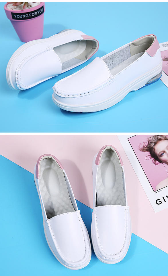 Zapatos antideslizantes para mujer, calzado cómodo con cojín de aire para mamá, con cuña de cuero, para Hospital, enfermera, color blanco, venta al por mayor