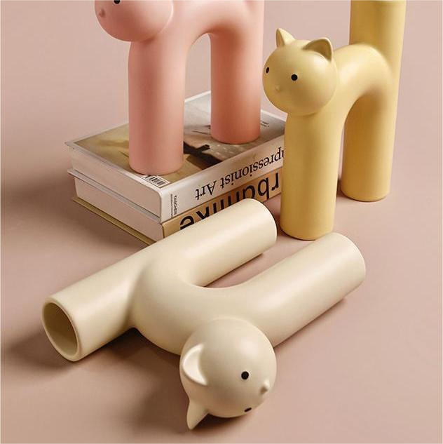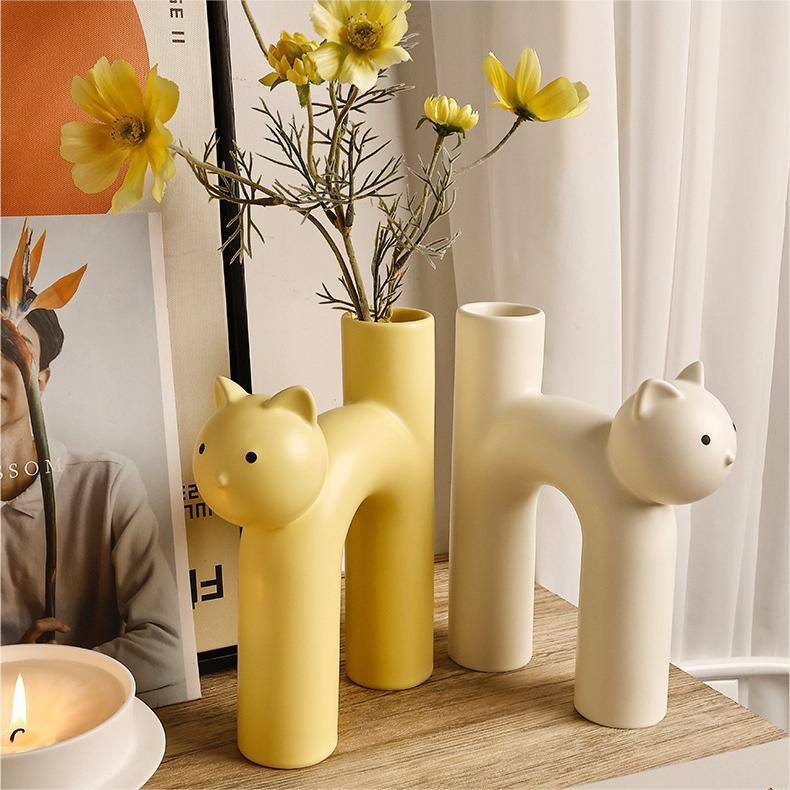 Venta al por mayor nórdico creativo gato forma jarrón de cerámica decoración del hogar creativo coreano lindo tubo gato jarrón