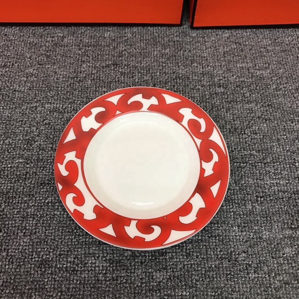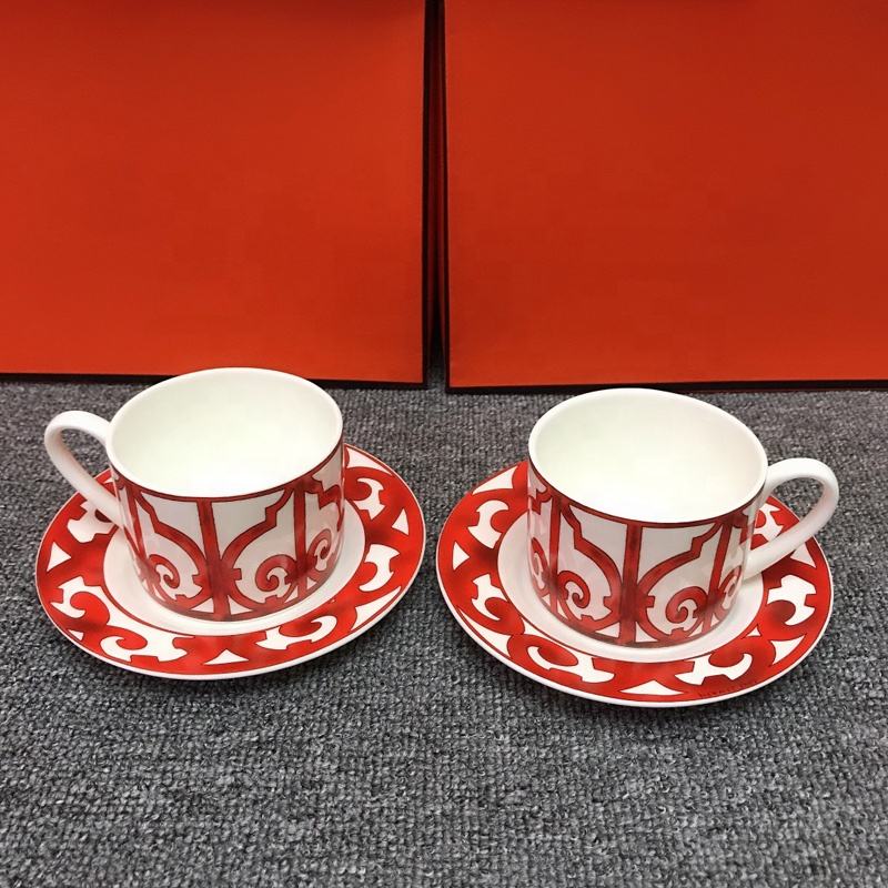 Juego de 2 Tazas de Té de Cerámica con Borde Rojo Nórdico y Platos de Porcelana para Servir Café y Té, Venta al Por Mayor