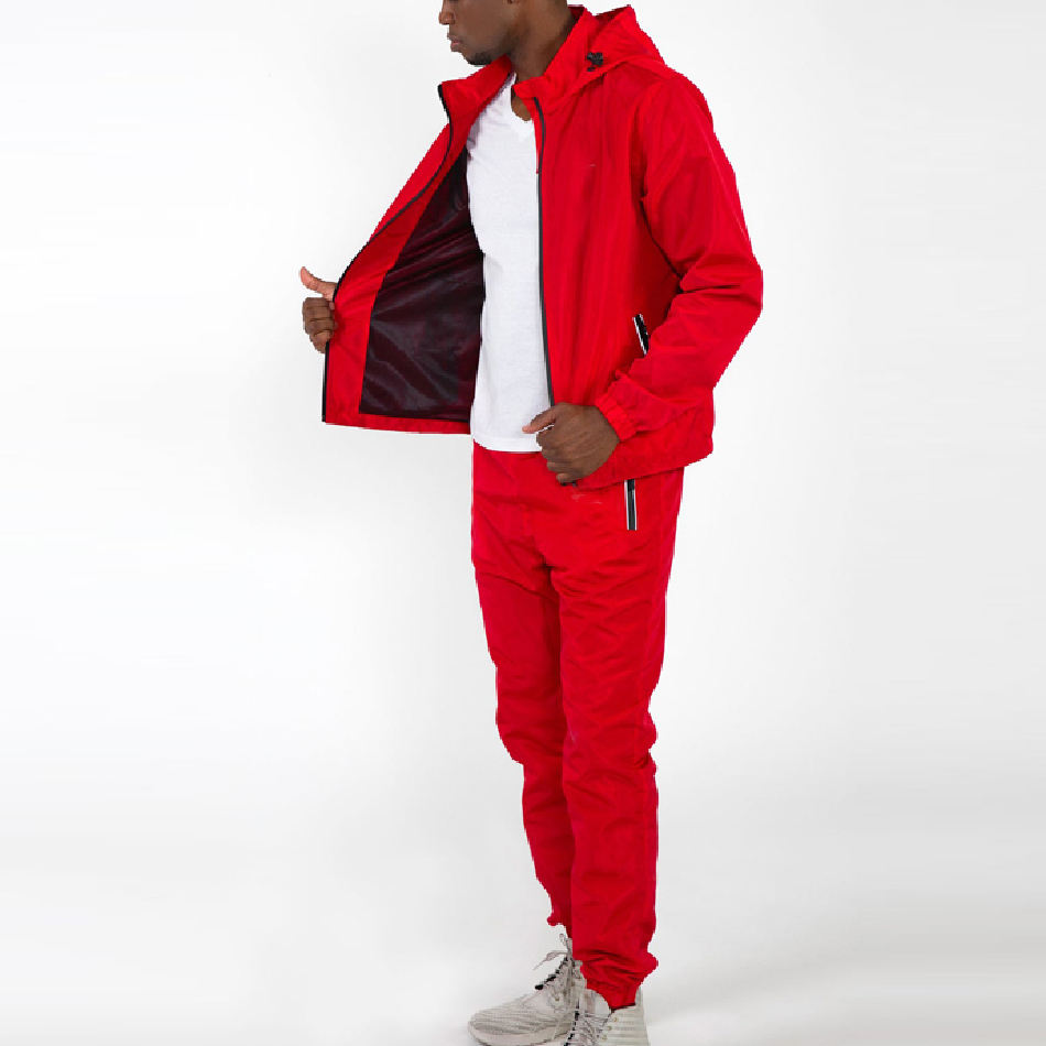 Venta al por mayor de chándales de nailon para hombre logotipo personalizado impreso deporte de invierno chaqueta cortavientos y pantalones para correr conjunto de chándal OEM