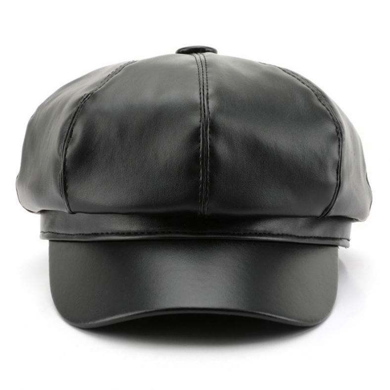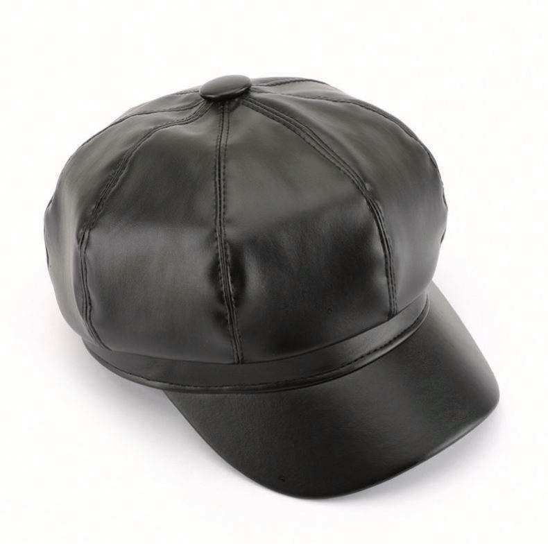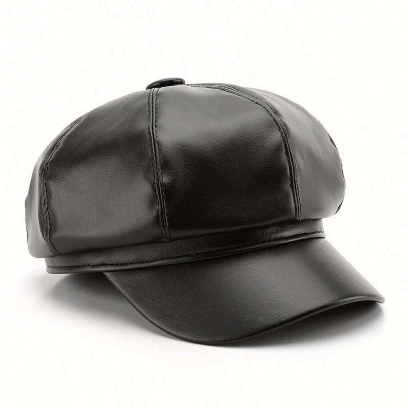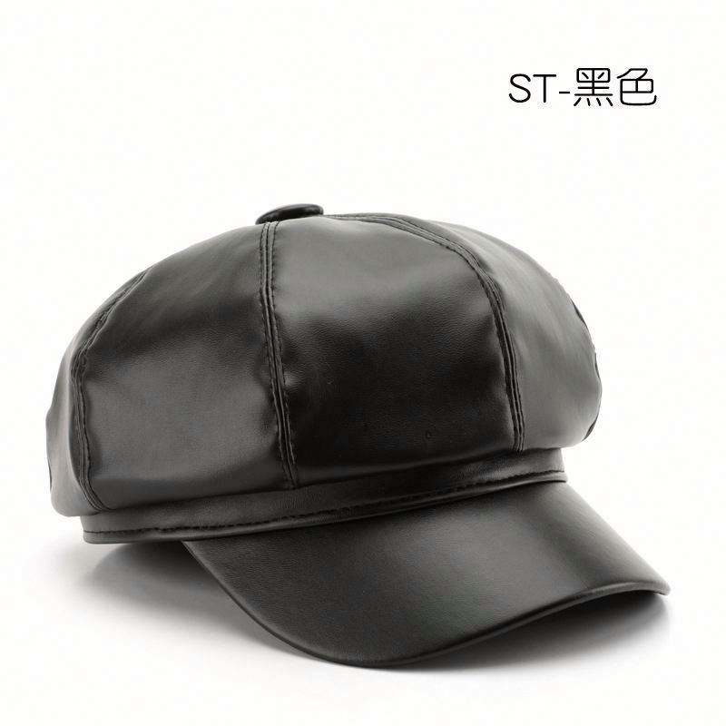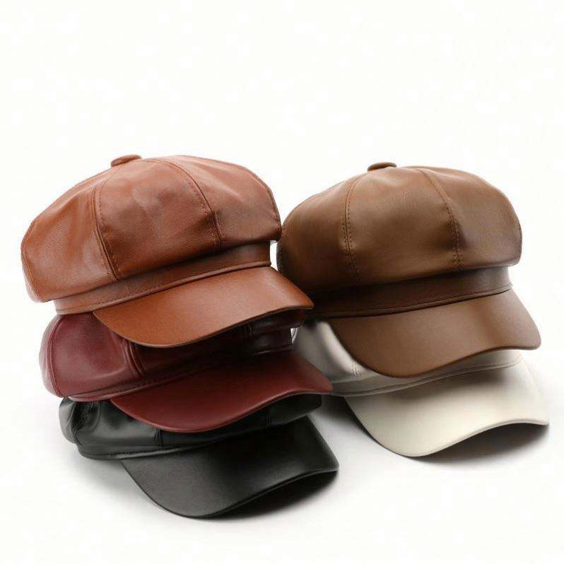 Sombrero octogonal al por mayor para mujer, estilo personalizado, de cuero liso, para primavera y otoño, tipo boina de pintor, cálido para exteriores y calle