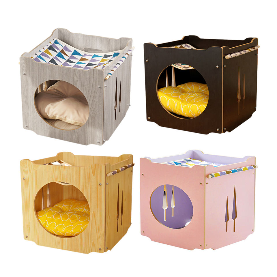 Venta al por mayor una casa de gato de tablero MDF desmontable de dos capas para interiores