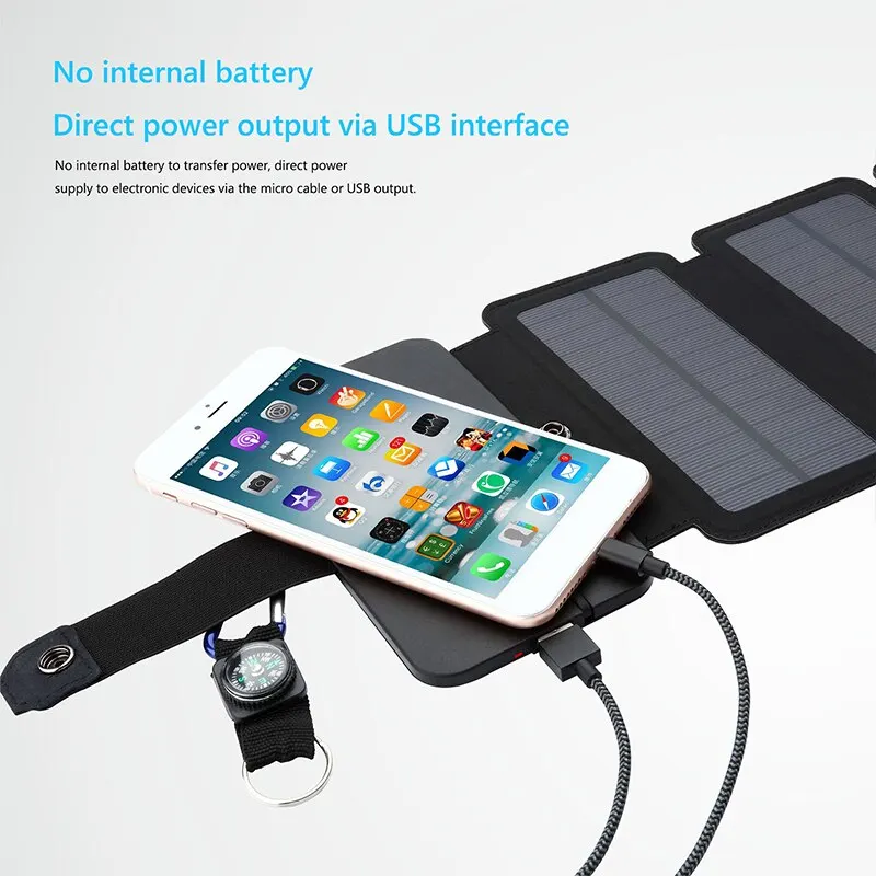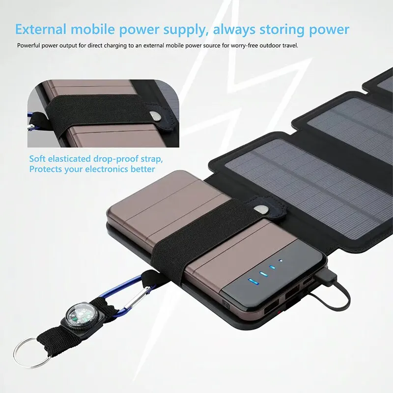 Dispositivo de Carga Solar Portátil Multifuncional para Exteriores, Plegable, con Salida USB de 1A, Herramienta de Camping de Alta Potencia, Venta al Por Mayor
