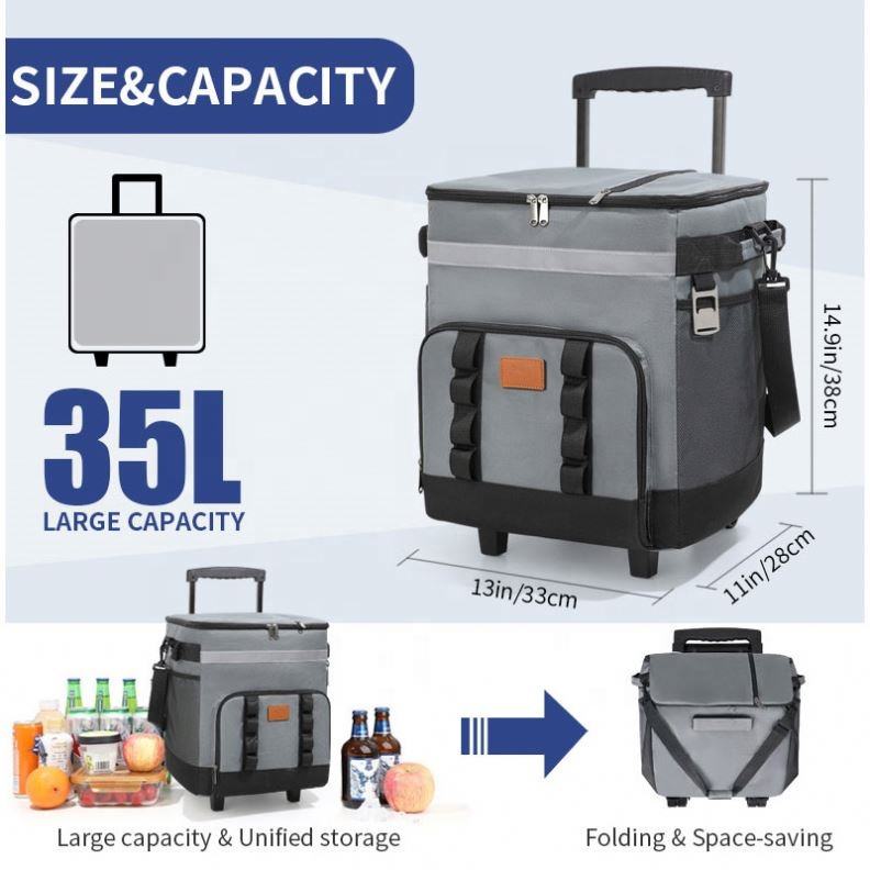 Nevera Portátil Oxford para Automóvil, Mochila de Picnic de Gran Capacidad, Aislada, Térmica, Impermeable, con Barra de Arrastre Personalizada