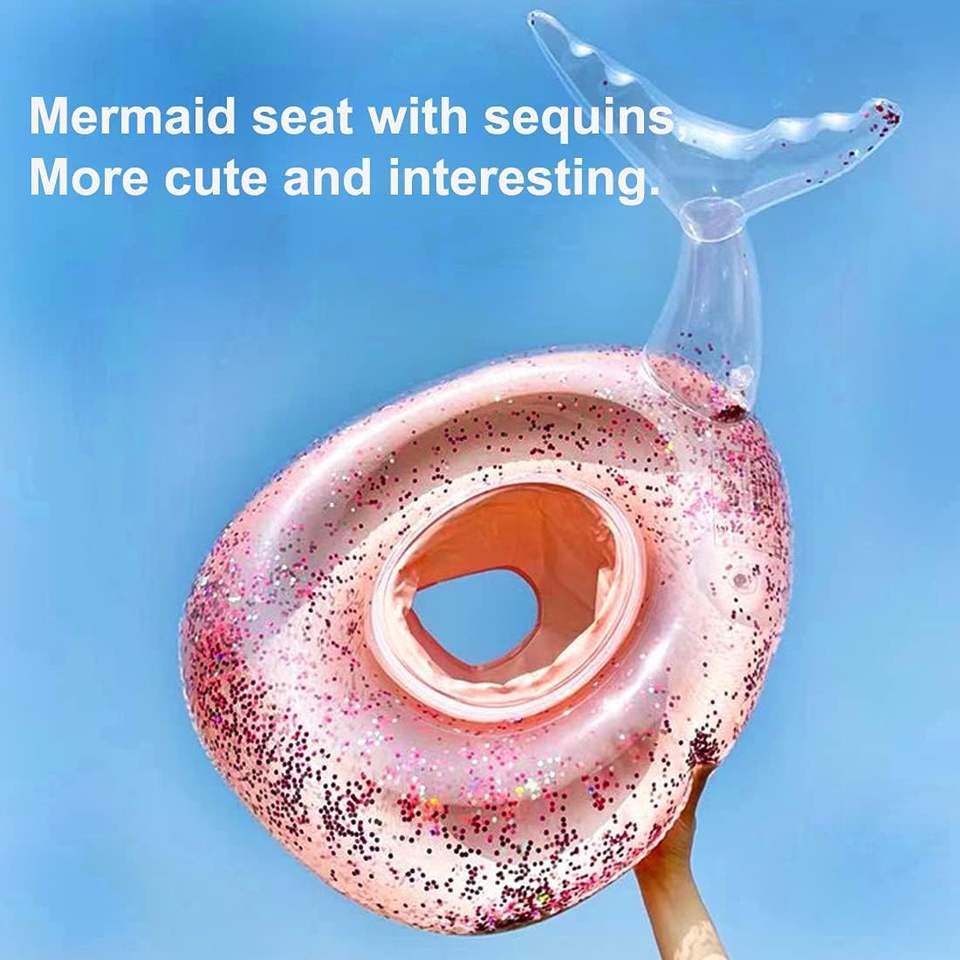 Venta al por mayor de PVC bebé inflable sirena piscina Floatie para bebés de 2 meses a 6 años de verano piscina anillos con lentejuelas