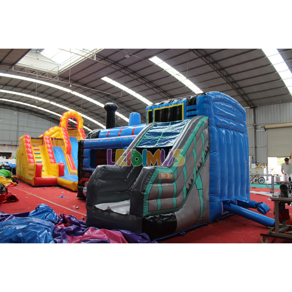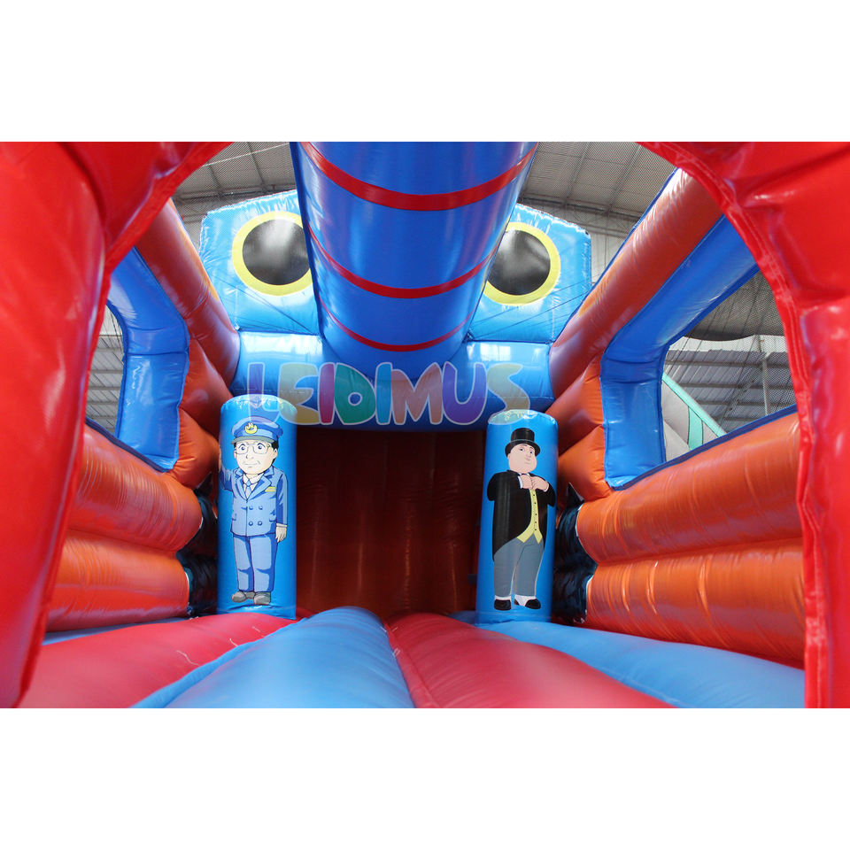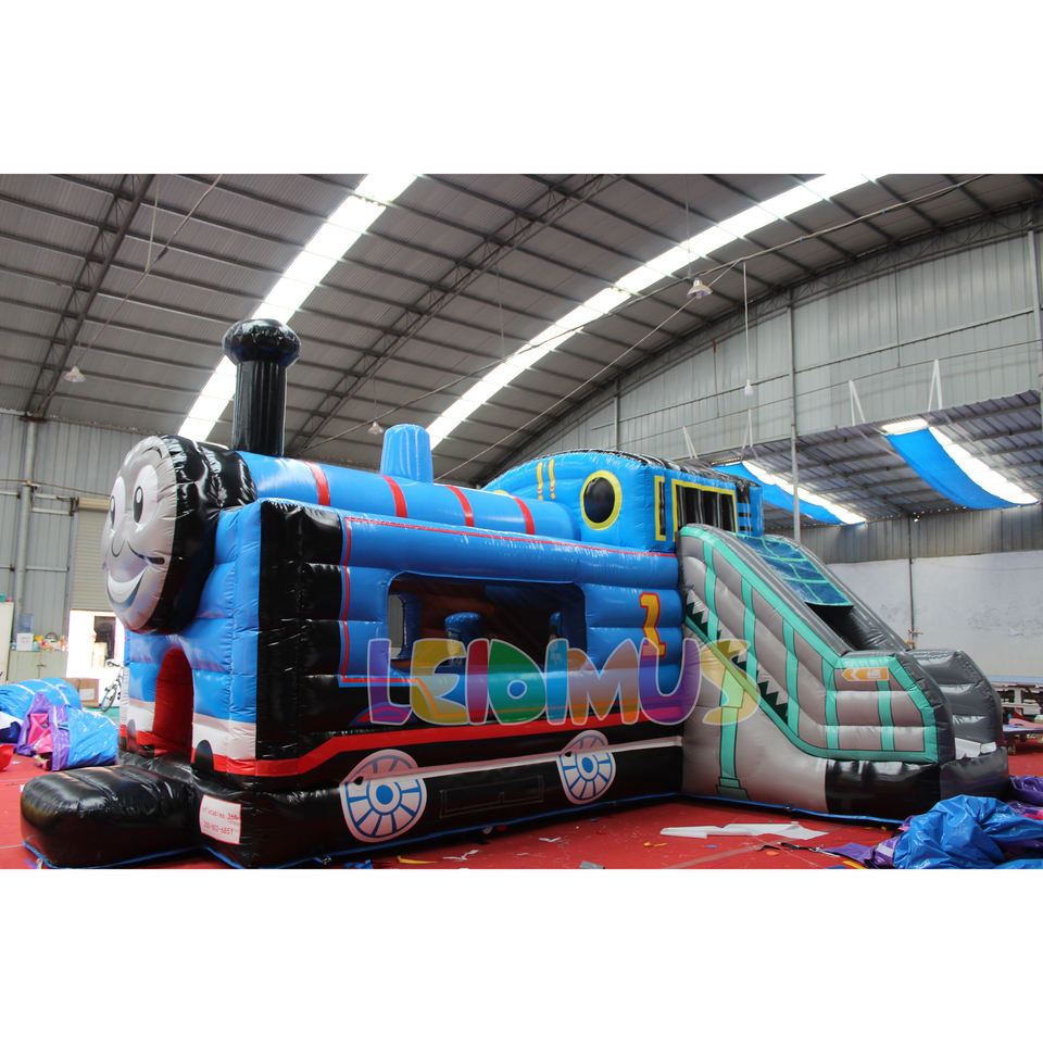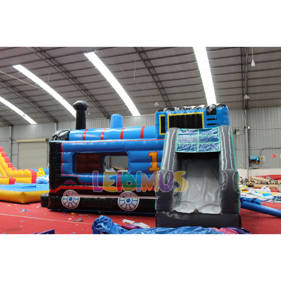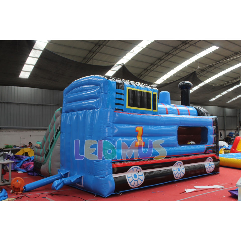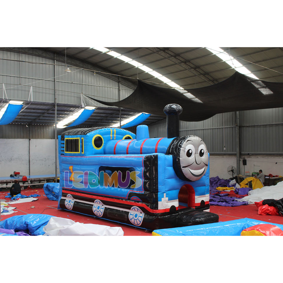 Castillo inflable de PVC al por mayor a la venta castillo hinchable azul Thomas pequeño tren gorila inflable con tobogán combo de dibujos animados