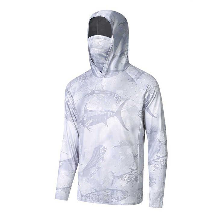 Venta al por mayor Rendimiento de secado rápido Camisas de pesca de manga larga Spf50 Camisas de senderismo Protección solar Sudaderas con capucha de pesca con máscara facial