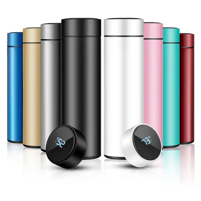 Botellas de Agua Deportivas Térmicas de Viaje con Aislamiento al Vacío, Personalizadas al por Mayor, con Tapa Inteligente LED de 500 ml y Pantalla de Temperatura
