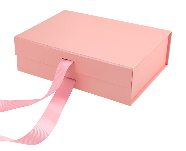 Nombre del producto:Cajas plegables rosas de papel con ventana magnética de PVC