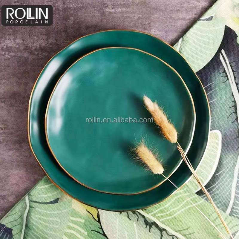 Vajilla de Porcelana Verde, Juego de Platos de Cerámica Esmaltada de Color Verde, Diseño Nuevo, Precio de Fábrica, Venta al por Mayor