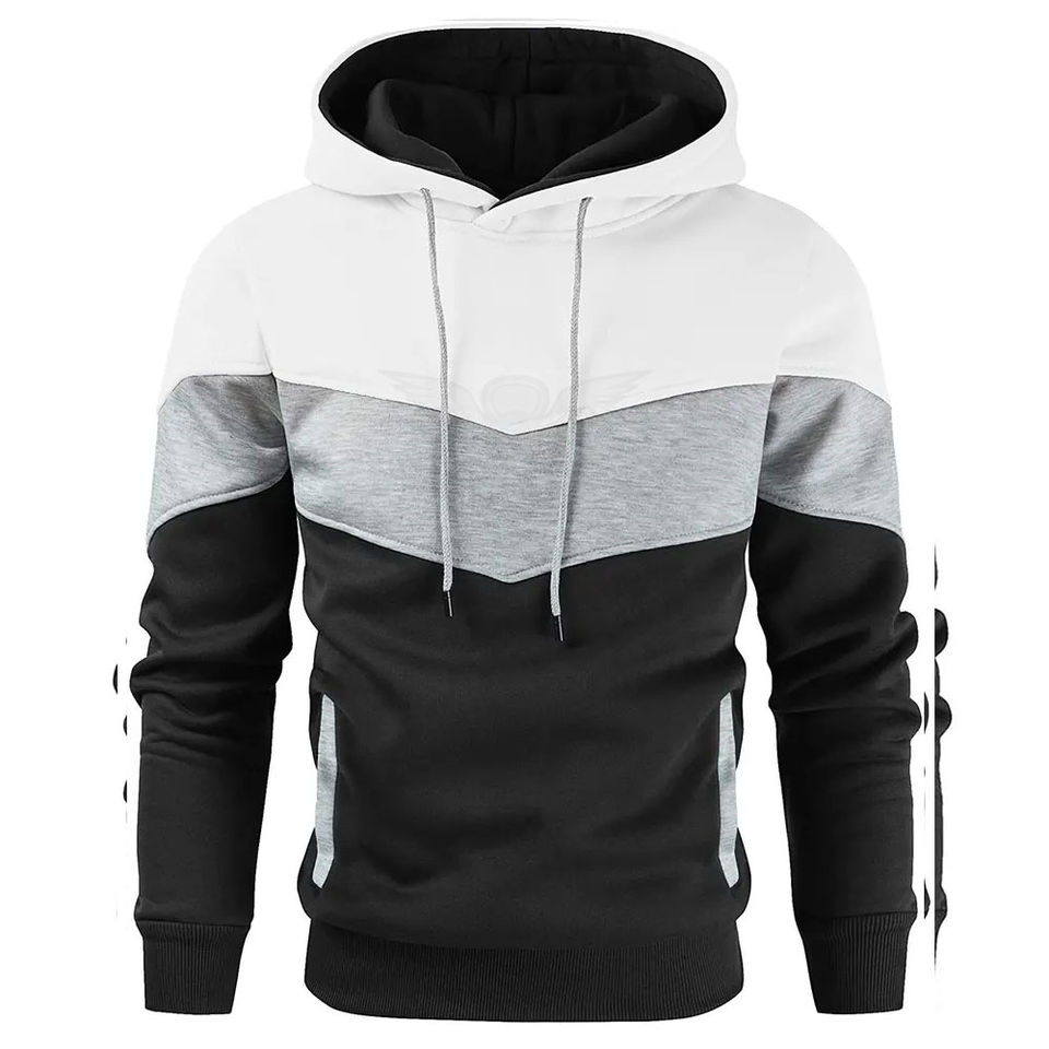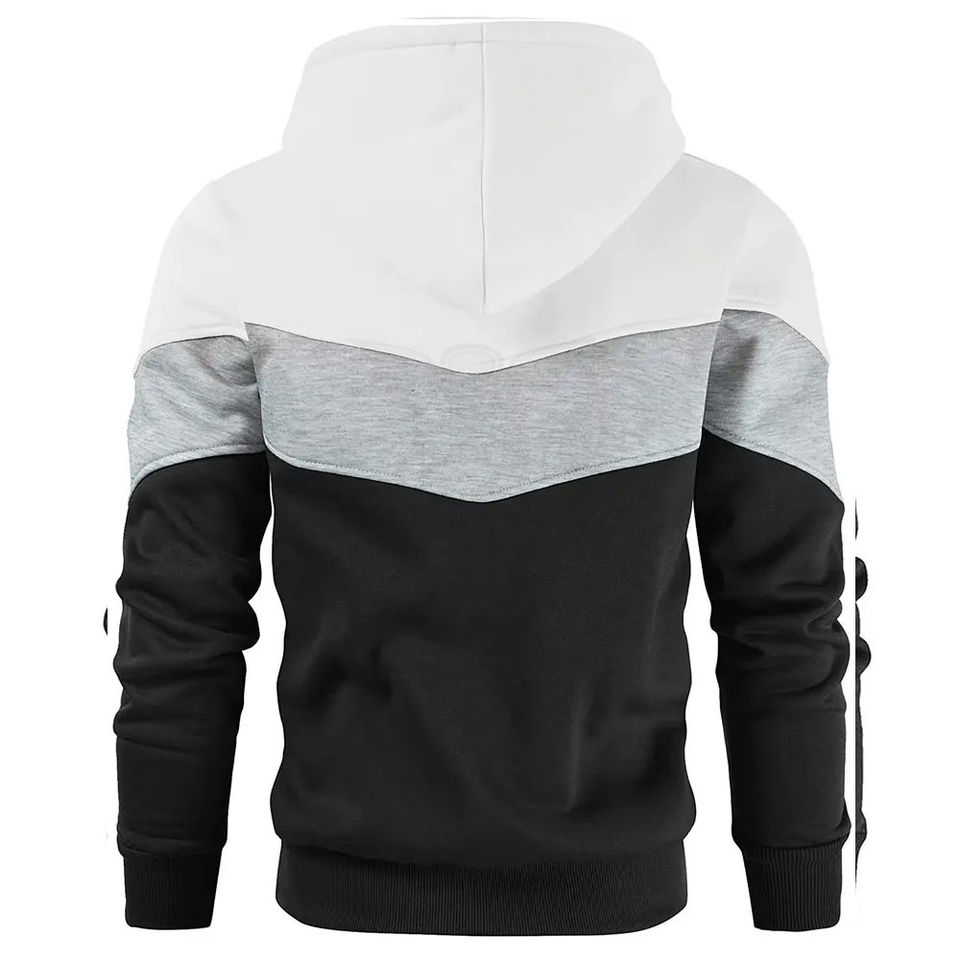 Sudaderas con Capucha de Algodón de Talla Grande al por Mayor, Básicas, en Blanco y Negro, con Bloques de Color, Estilo Pullover, Diseño Sólido para Hombre