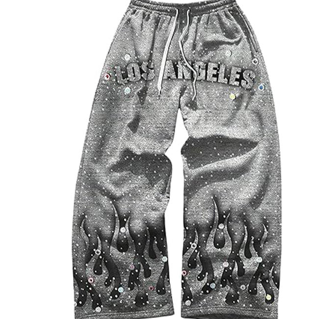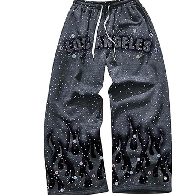 Palabras clave:Pantalones de chándal anchos con logo personalizado para hombre, con pedrería, de pierna ancha