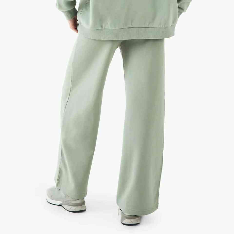 Pantalones de chándal rectos de poliéster/algodón para mujer al por mayor, ropa de calle transpirable con logotipo plano de encaje estampado DTF personalizado, pernera ancha para invierno