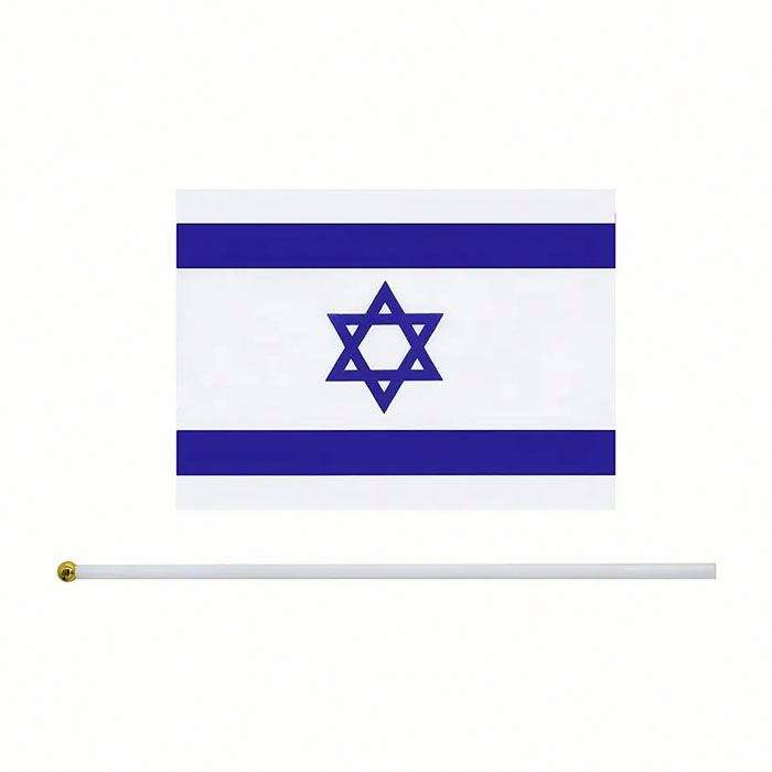 Banderas Miniatura de Israel Personalizadas de Poliéster al por Mayor, Banderas Pequeñas de Mano con Asta para Decoración