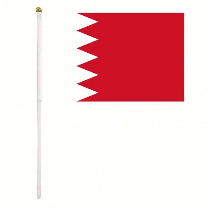Bandera de Mano de Baréin Promocional de Poliéster con Impresión Digital Personalizada al por Mayor para Apoyo a Equipos en Competiciones