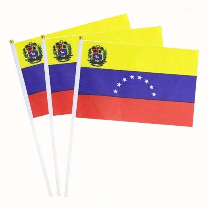 Banderas Pequeñas de Poliéster al por Mayor, Banderas Personalizadas de Venezuela, Banderas Internacionales con Palitos para Agitar con la Mano, para Decoración de Fiestas