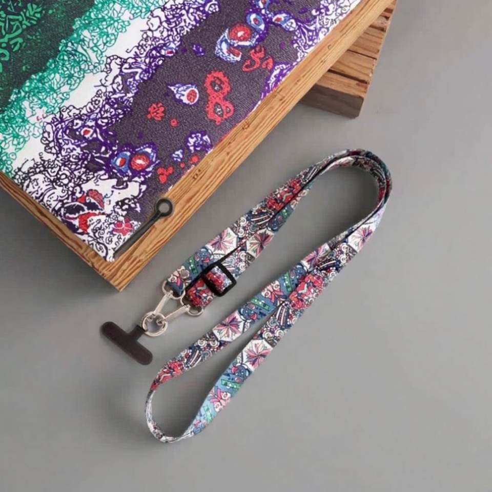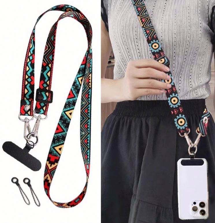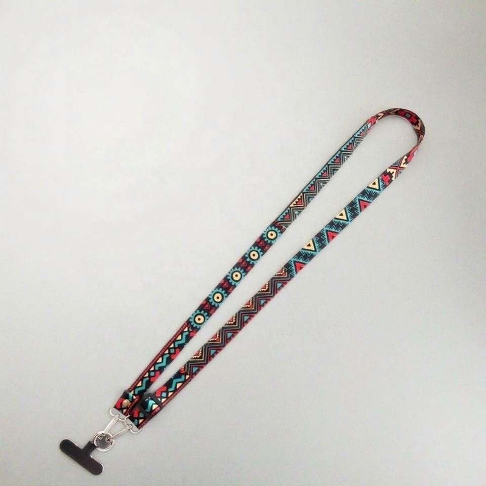 Correa de teléfono ajustable de poliéster estilo retro al por mayor con cadena colgante y patrón, correa cruzada para teléfono