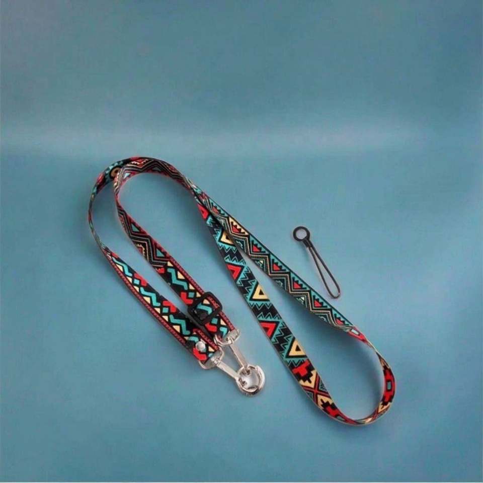Correa de teléfono ajustable de poliéster estilo retro al por mayor con cadena colgante y patrón, correa cruzada para teléfono
