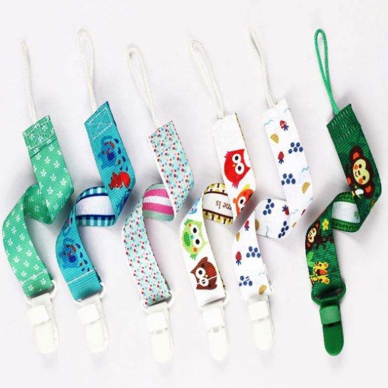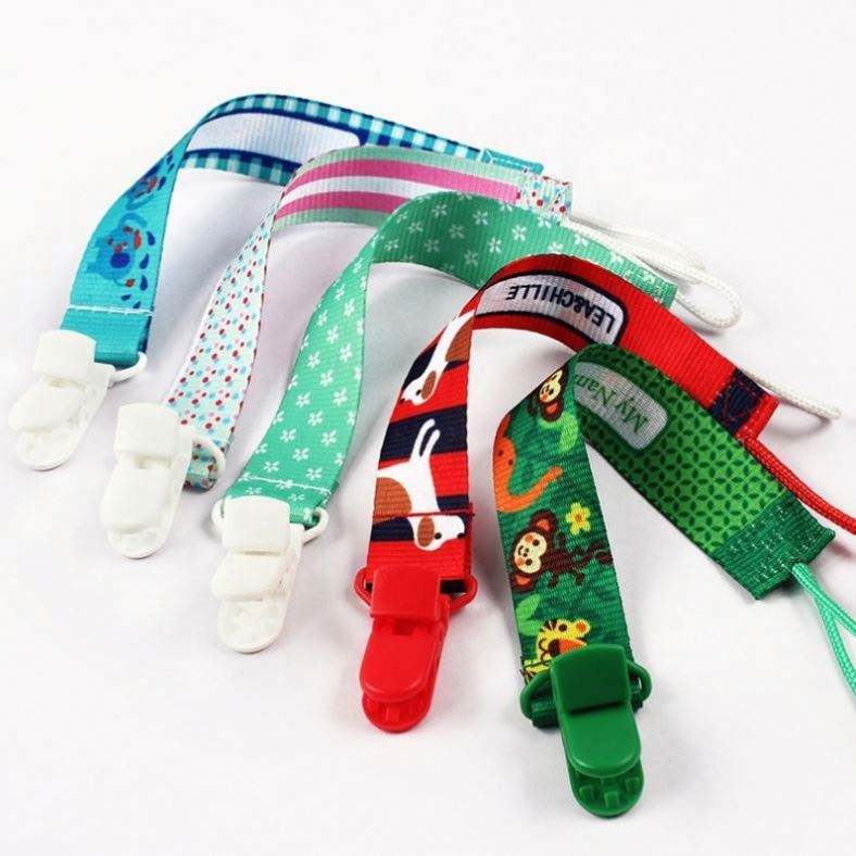 Cinta de poliéster para sublimación al por mayor con patrón de animales, soporte para chupete de bebé con clips para mordedores de bebé