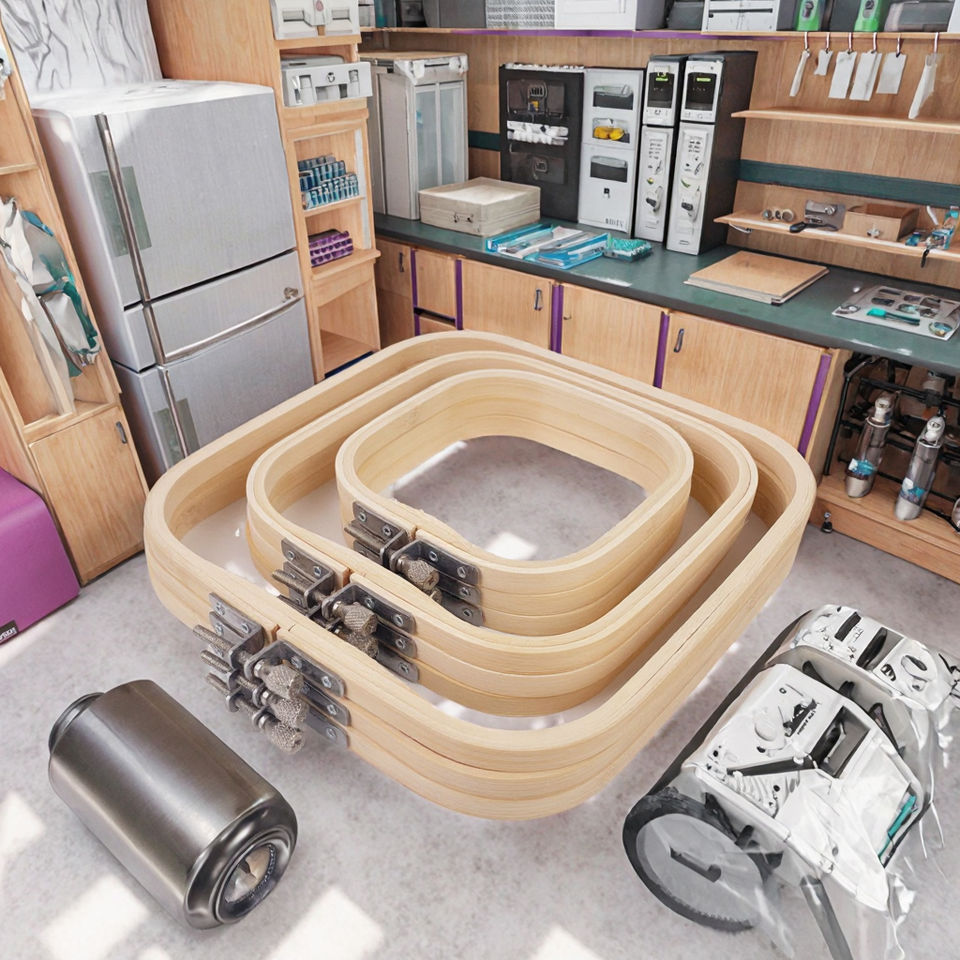 Aros de Bordado Cuadrados de Bambú Portátiles al por Mayor, Juego de Aros de Punto de Cruz de Estilo Simple, Accesorio de Costura