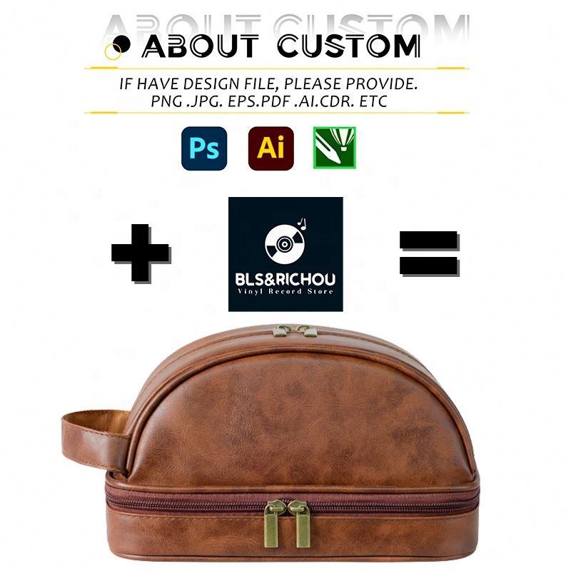 Bolsa de almacenamiento de viaje portátil al por mayor, bolsa de inodoro multifuncional impermeable, bolsa de maquillaje retro de piel sintética personalizada con logotipo