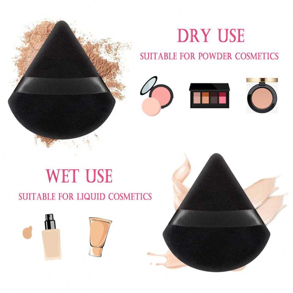 Al por mayor Borla de maquillaje triangular de terciopelo para polvos, con pegatina de San Valentín de regalo, marca privada
